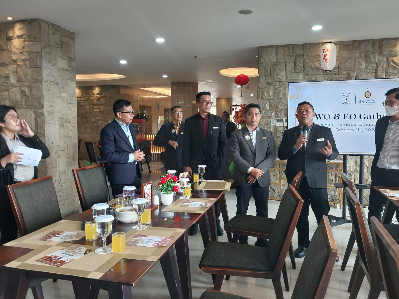 “Biasanya EO dan WO merangkap (menjadi satu) bekerja untuk memenuhi kebutuhan yang semakin banyak dicari para calon pengantin. Kami, Sapphire Sky Hospitality menyelenggarakan gathering untuk pertama kalinya, berbarengan dengan pameran pernikahan di BSD,” kata Yohanes Parwoto pada Rabu (11/02/2026) saat menggelar WO & EO Gathering di Yasmin Hotel Karawaci